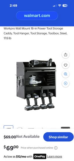 Workpro Wall Mount 18-in Power Tool Storage Caddy, Tool Hanger, Tool Storage, Toolbox, Steel, 17.6 lb$50Dallas, TX