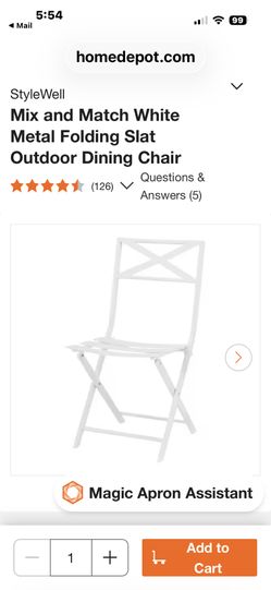 Four StyleWell Mix And Match White Metal Folding Slat Outdoor Dining Chairs$80Dallas, TX