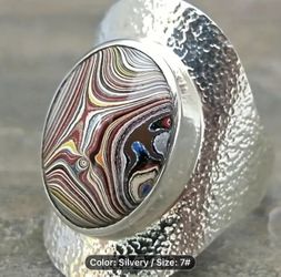 Boho-Chic Vintage Silvery-Plated Alloy Ring With Agate Inlay - Perfect For Casual Attire$15Fairfax, VA