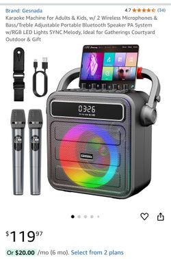 Karaoke Machine for Adults & Kids, w/ 2 Wireless Microphones & Bass/Treble Adjustable Portable Bluetooth Speaker PA System w/RGB LED Lights SYNC Melod$60New York, NY