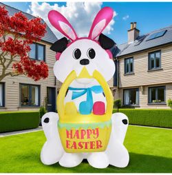 4FT Easter Inflatables Dog Outdoor Decoration, Bright Dog with Bunny Hat Holding Basket Easter Inflatable Built in LED Lights Yard Blow Up Gifts Great$20New York, NY