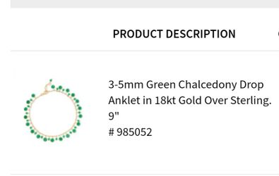 Green Chalcedony Drop Anklet Brand New$95Laurel, MD