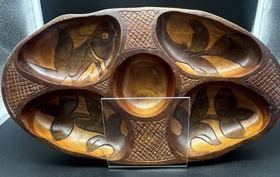 Vintage Hand Carved Wooden Divider Serving Dish $23Hanford, CA