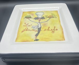 Vintage Brunnelli Set of 4 Square “La Femme Chef” Pasta Plates$16Hanford, CA