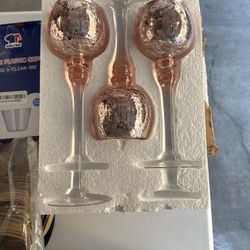 Set of 3 Crackle Pink Glass Tealight Holders 12 Inch, 10 Inch, 9 Inch Heights$20Lincoln Acres, CA