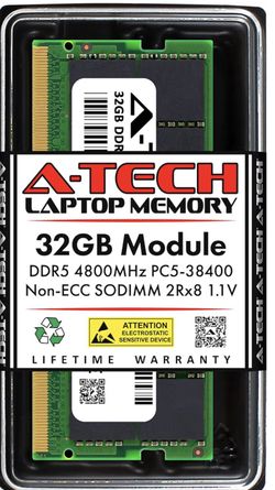Tech32GB DDR5 4800MHz PC5-38400 CL40 SODIMM $380Joliet, IL