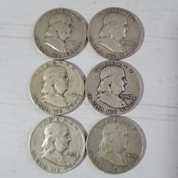 Lot of 6 Franklin Silver Half Dollars Various Dates Listed$265Magnolia, TX