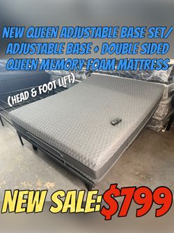 NEW QUEEN ADJUSTABLE BASE SET/ADJUSTABLE BASE + DOUBLE SIDED QUEEN MEMORY FOAM MATTRESS $799Bellflower, CA