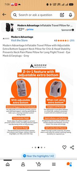 Inflatable Travel Pillow - Airplane Pillow for Neck Support on Long Flights, Buses, Cars, Office &$20Houston, TX