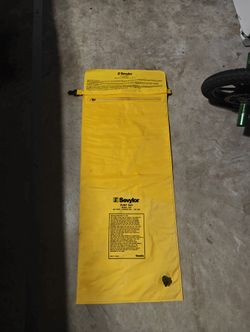 This is a yellow Sevylor pump bag, which can also function as a dry bag or storage bag for inflatable kayaks and canoes.