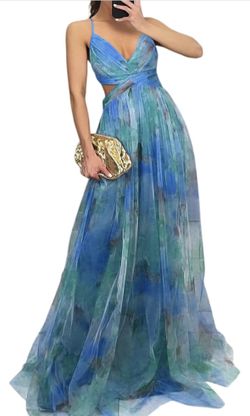 Blue Green Small Flowy Long A Line Dress Spaghetti Strap V Neck Cut Out Prom Wedding$40Miami, FL