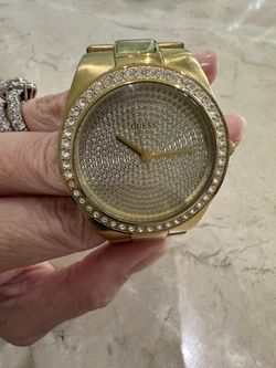 GUESS Ladies Gold Tone Waterpro Watch W/ Crystals On Face & Bezel Bling$30Miami, FL