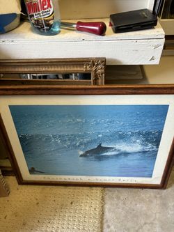 30 β x 22.β VINTAGE - SCOTT PRICE. - DOLPHINS SURFING π¬πββοΈπββοΈ ( Oak Frame Collectible ) REDUCED FOR FAST SALE ππ$15Rolling Hills, CA