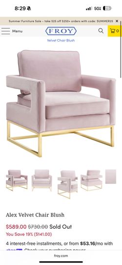 Alex Velvet Chair Blush$450Los Angeles, CA