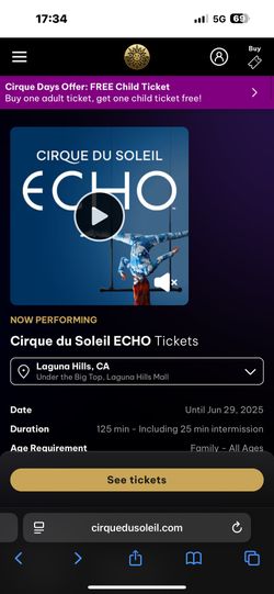 CIRQUE DU SOLEIL$350Laguna Hills, CA
