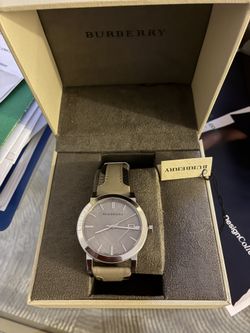Burberry BU9021 Large Check Tan Leather and Canvas Strap Cream Dial Watch$1Houston, TX