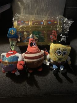 Cinemark Spongebob Squarepants Treasure Chest Popcorn Bucket and 3 Set Plushes $150Long Beach, CA