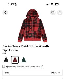 Denim Tears Plaid Red Zip hoodie XL$155Oakland, CA