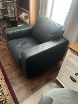 Black Faux Leather Chair With Black Leather Ottoman With Storage $100Sienna Plant, TX