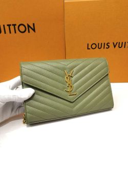 Yves Saint Laurent Light Sage Chevron Quilted Grained Leather Envelope Wallet on Chain Bag$278Indianapolis, IN