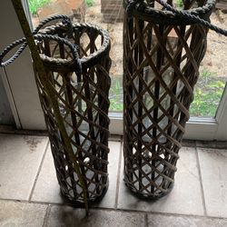 Two Glass And Wicker Hurricane Candle Holders$20Haverhill, MA
