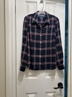 Women’s TOMMY HILFIGER 100% Cotton, Thin, Lightweight, Navy Plaid Long Sleeve Button-Down Shirt Top… Size Small$8Manasquan, NJ