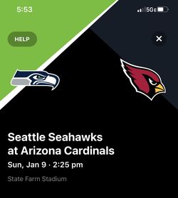 2 Tickets Lower Level Row 2 Cardinals Vs Seahawks With Green East Parking $220Glendale, AZ