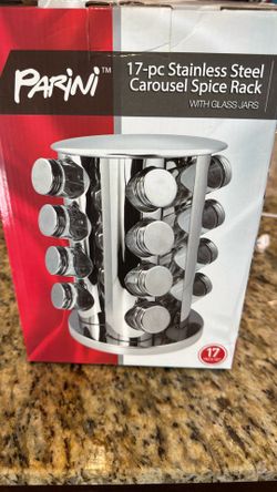 17 Pc Stainless Steel Carousel Spice Rack with Glass Jars$40Corona, CA
