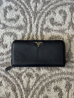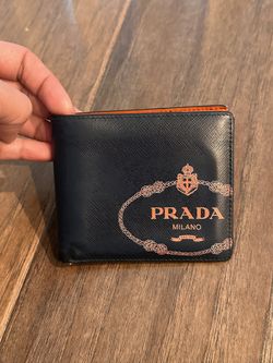 PRADA NAVY SAFFIANO LEATHER ORANGE SILKSCREEN LOGO WALLET$289Lathrop, CA