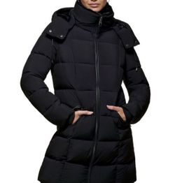 Women's DKNY stretch faux down hooded puffer.$150New York, NY