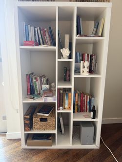 Viral discontinued White 12 shelf asymmetrical shelving bookcase$150Santa Monica, CA