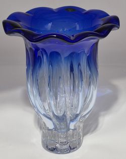 Shannon Crystal Designs Of Ireland Cobalt Blue Ruffle Top Vase 13" Hand Blown$60Bonney Lake, WA