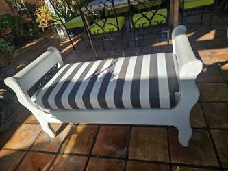 Beautiful White Bench With Black iron Details 28" Tall, 51" Wide, 24 " Deep, Brand New Custom Made Cushions Great For Covered Entrances Or Any Room$95Temple City, CA