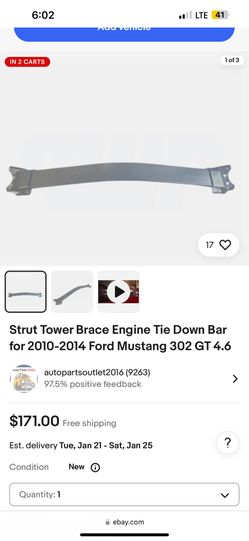 2011 2012 2013 2014 Mustang Strut Tower Brace$100Gillette, NJ
