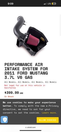 2011 2012 2013 2014 V6 Mustang Airraid Cold Air Intake$200Gillette, NJ