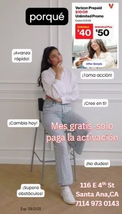Verizon Mes Gratis * Servicio Hasta 10 No ID#$35Santa Ana, CA