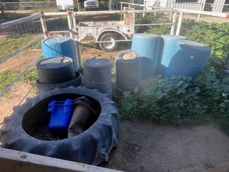 4 Blue Barrels, One large tractor tire, 2 Plastic Trash Cans, Random horse Feeders$60Chandler, AZ