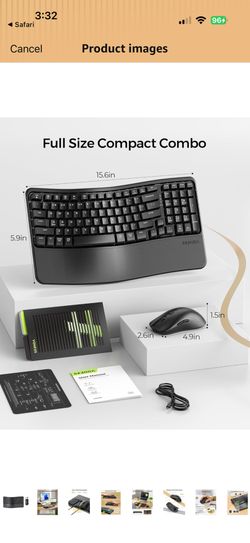 seenda Bluetooth Ergonomic Keyboard and Mouse, COE310 3 Multi-Device Connectivity, Rechargeable Wave Wireless Keyboard Mouse Combo, Compatible for Win$30Las Vegas, NV