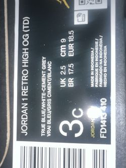 Jordan Retro High Tru Blu Size 3C $40Bonney Lake, WA