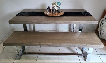 Gray Dining Table And Bench Excellent Condition $400Hialeah, FL