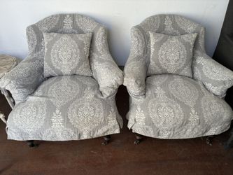 2 Gray And White Slip Cover Chairs$40Costa Mesa, CA