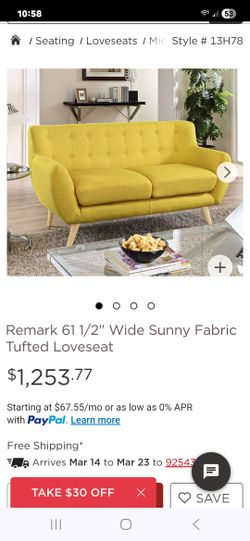 Remark 61 1/2. Sunny Fabric Tufted Love Seat And Chair Style$200Menifee, CA
