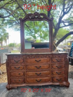 Wood dresser and mirror 🪞$200Mercedes, TX
