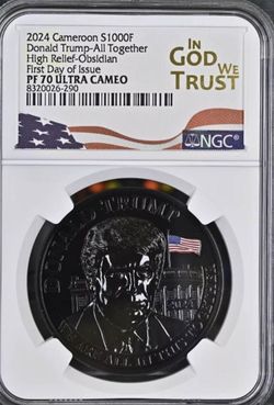 DONALD TRUMP 2024 CAMEROON- PROOF SILVER OBSIDIAN NGC PF70 HR Ultra Cameo///— Send Me Your Offer/// 5 Available///$225Mountlake Terrace, WA