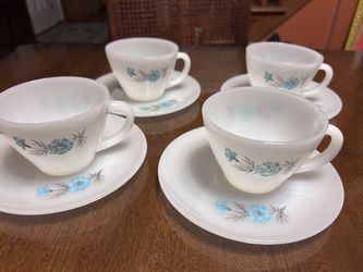 Vintage Fire King Blue Bonnie milk glass oven ware made in USA, 4 tea cups 5 saucers$20Middletown, NY