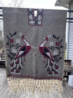 Embroidered Peacock Poncho Wall Hanging Table Runner Woven Tapestry with Fringe$50Middletown, NY