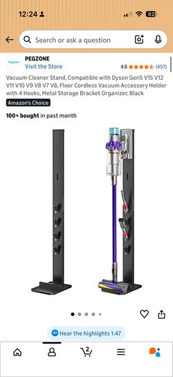 Vacuum Cleaner Stand, Compatible with Dyson Gen5 V15 V12 V11 V10 V9 V8 V7 V6, Floor Cordless Vacuum Accessory Holder with 4 Hooks, Metal Storage Brack$40Seattle, WA