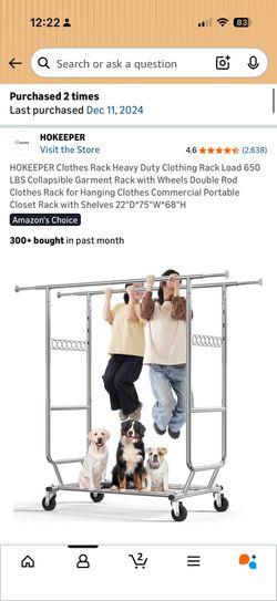 HOKEEPER Clothes Rack Heavy Duty Clothing Rack Load 650 LBS Collapsible Garment Rack with Wheels Double Rod Clothes Rack for Hanging Clothes Commercia$60Seattle, WA