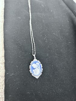 BBJ Blue Agate Angel Cameo Rhodium Over Sterling Silver Pendant With Chain.$50Chula Vista, CA