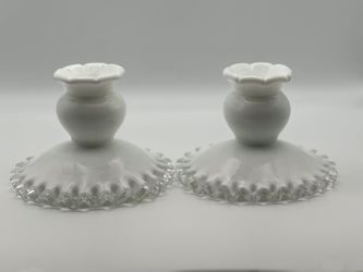Vintage- Fenton, Candle Holders, Silver Crested Milk Glass $40Hillsboro Beach, FL